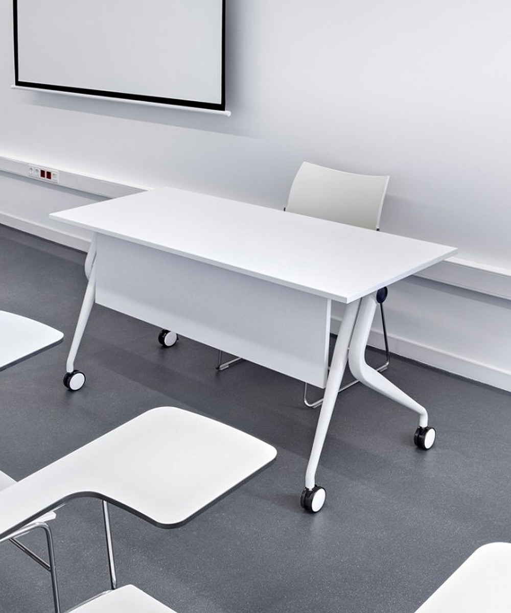Una mesa práctica, atractiva y estable, que optimiza el espacio para su almacenamiento y confiere una imagen elegante a cualquier espacio.